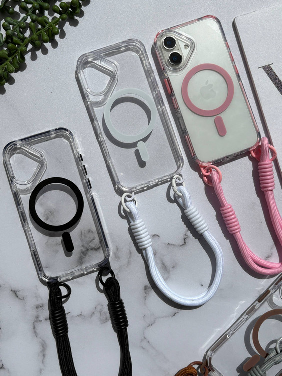 قاب شفاف مگ سیف رنگی بند دار