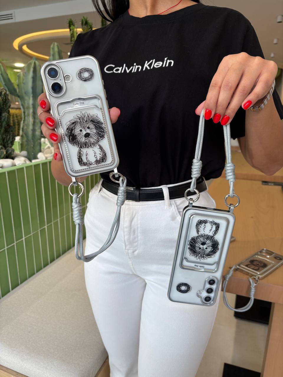 قاب جاکارتی طرح CUTE DOG آیفون همراه با بند دستی